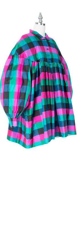 Bright-Colored Checked Silk Overcoat Dress